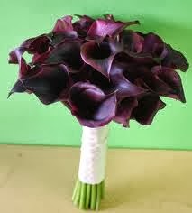 The first aspect of the flowers is the bouquets and the boutonnieres. I want them to be subtle and complement the wedding party, and not draw too much attention away from my lovely ladies and handsome men. Since our wedding "color" (if you can call it that) is purple, that limits our choices of flowers. I do love me the purple calla lily though. It's dark, dramatic, elegant and gorgeous.